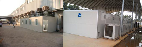 庫氏皮草20檯蒸髮型冷氣機安(an)裝完(wan)畢竝正(zheng)常運行,_高(gao)溫(wen)熱泵烘榦(gan)皮草(cao)安裝完畢竝正常(chang)運行。